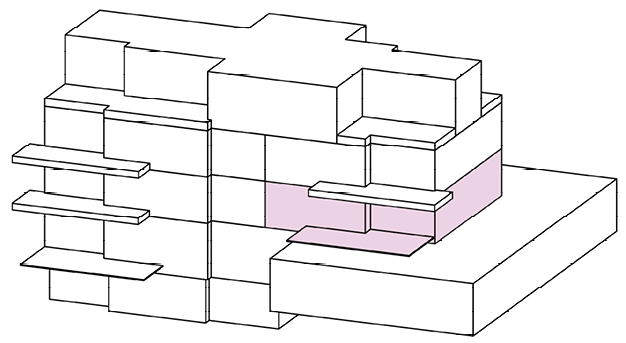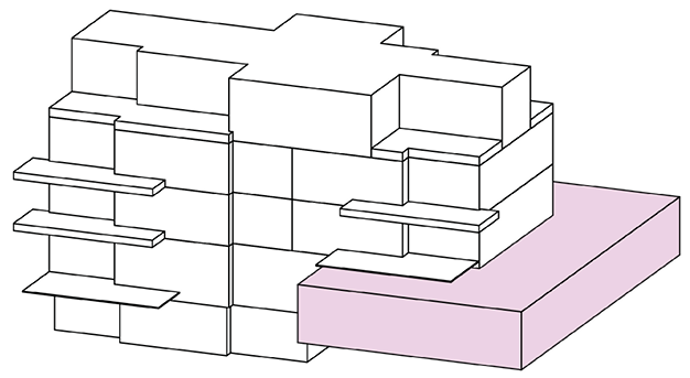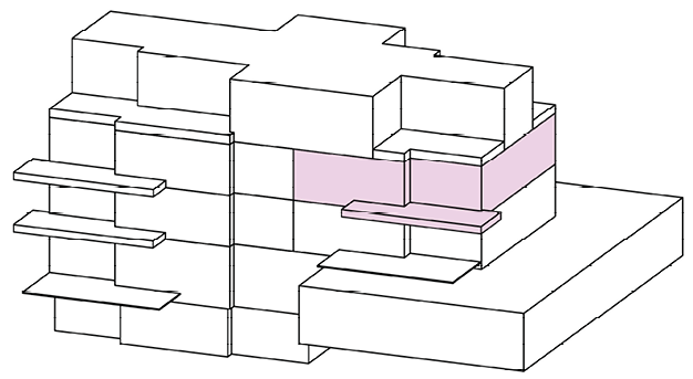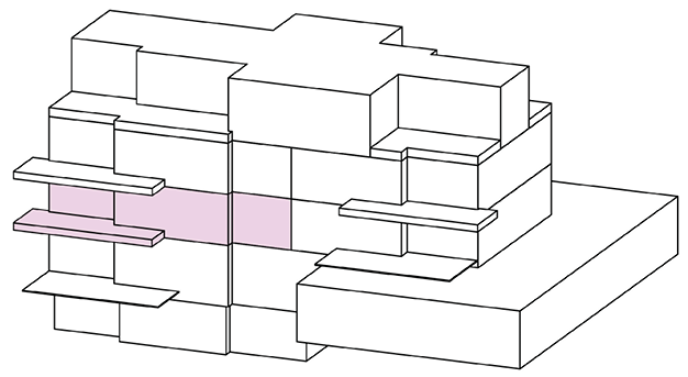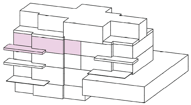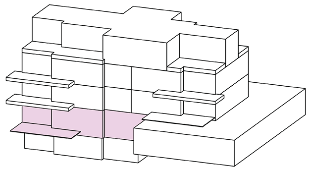 Tiefgarage: Wände und Decken in Beton, weiss gestrichen.